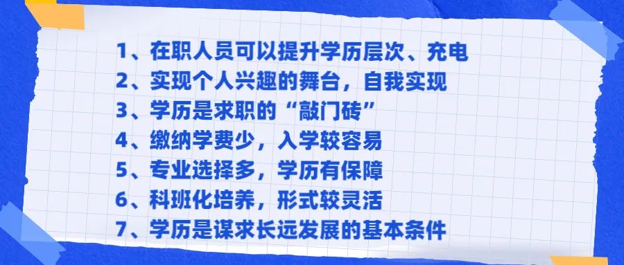 综上所述,大家通过报考成人高考毕业后,既能获得一份学历证书,也在学习的时候大家还获得了更多的知识,可以让你在未来有更多的选择、并且成人高考针对的人群非常的广泛,只要达到一定的条件之后就可以选择报考,因此大家不要小看成人高考哦。