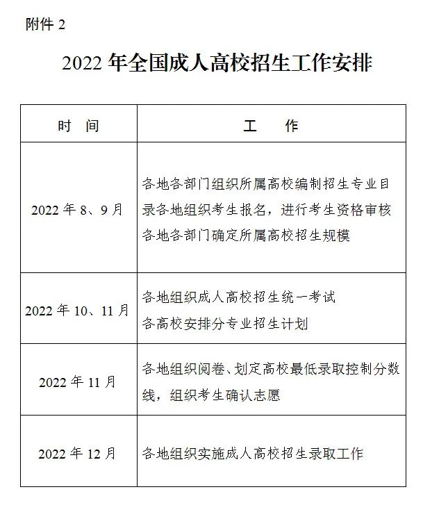 2022年全国成人高校招生工作安排